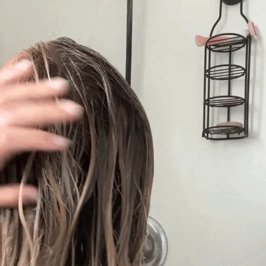 2. Aplica de 1 a 3 dosificaciones según la longitud y densidad de tu cabello, comenzando por las puntas y subiendo hacia las raíces.